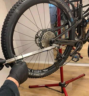 Cuidamos tu bicicleta con mimo y con los mejores productos del mercado para que siempre la tengas en perfectas condiciones. Limpieza, engrase y revisiones, reemplazo de piezas, ajustes, centrado de ruedas, mantenimiento de suspensiones delantera y amortiguador trasero, tratamiento anti-pinchazos, todo lo relacionado con sistemas eléctricos, etc… todo lo que tu bicicleta necesite.